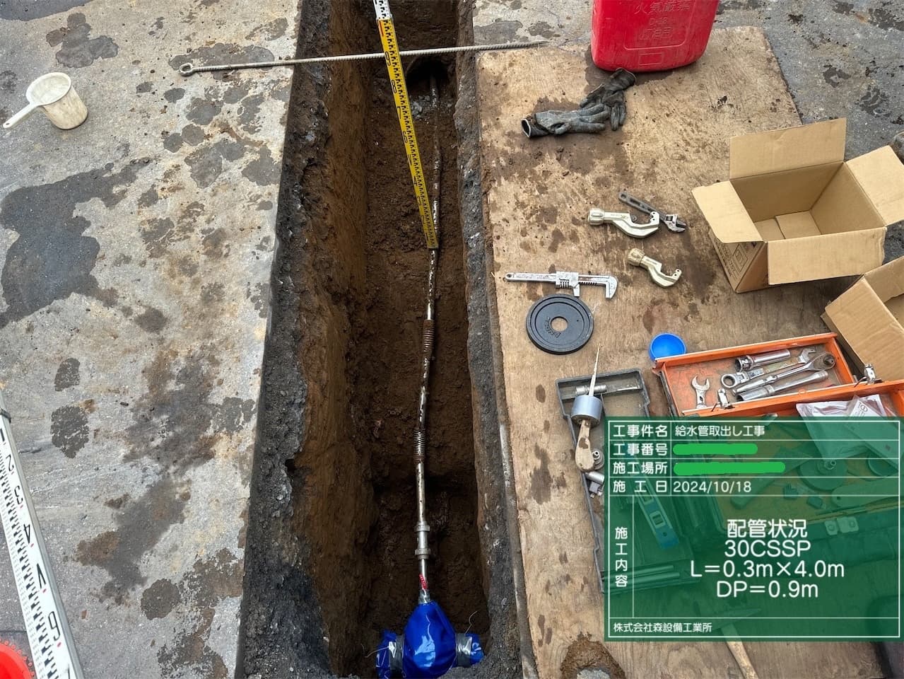 水道管取り出し工事/引き込み工事とは、水道本管を取り出し分岐させた分管を敷地内に引き込み、水道を供給する工事です。 森設備工業は安全・適正に工事ができると認められている東京都指定給水装置工事事業者として取り組んでいます。